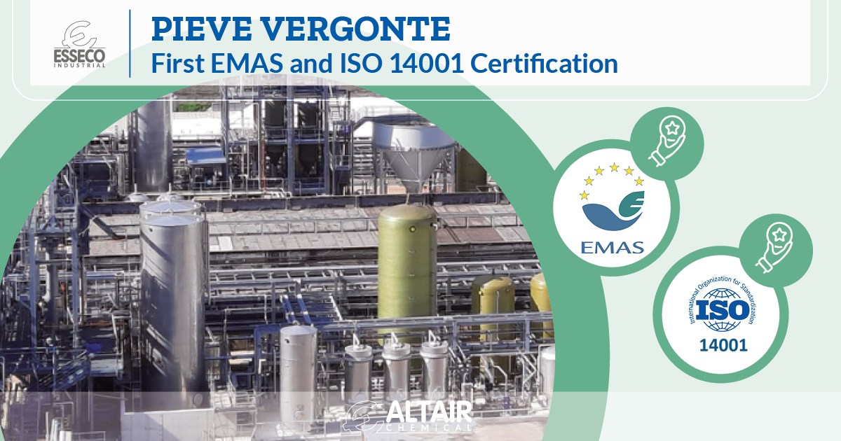 With a fully positive outcome, the Altair Chemical plant in Pieve Vergonte (VB) has obtained ISO 14001:2015 certification for the first time and successfully completed the preliminary audit to pursue its initial EMAS registration.