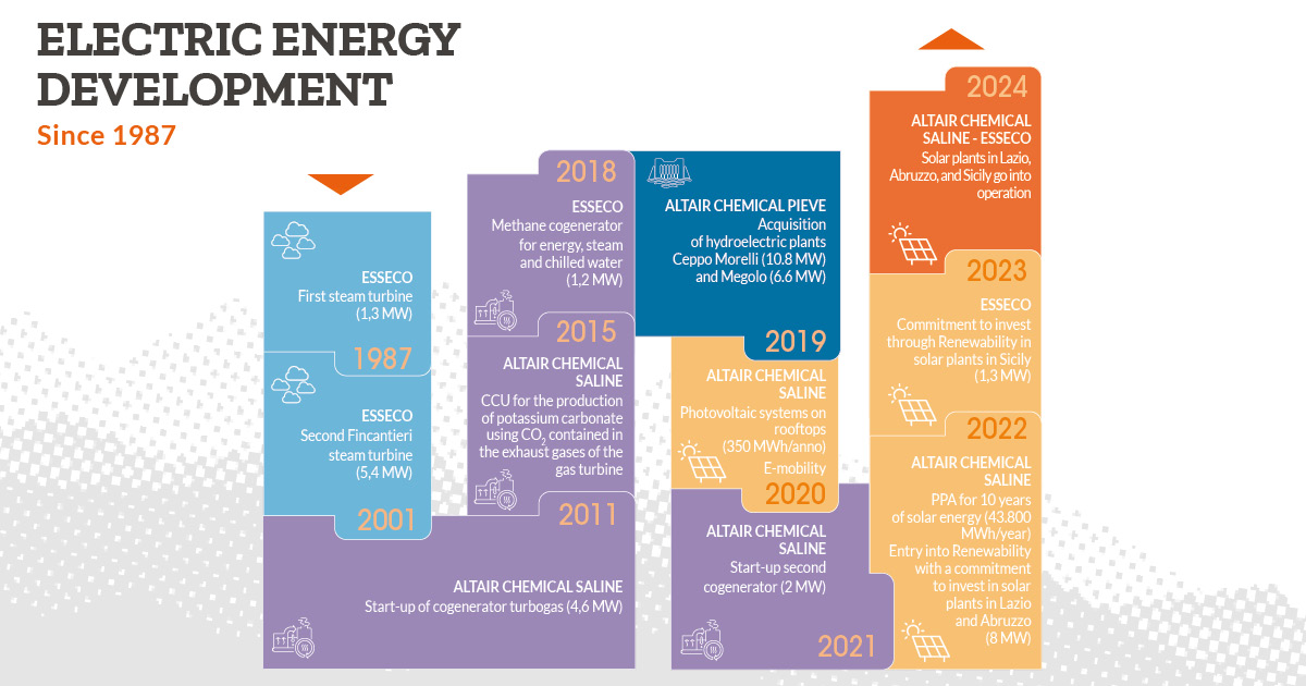 Steam turbines, co-generators, hydroelectric plants, photovoltaic systems, and agreements for renewable energy supply have all been part of this unstoppable journey toward achieving a CO2-free energy mix.