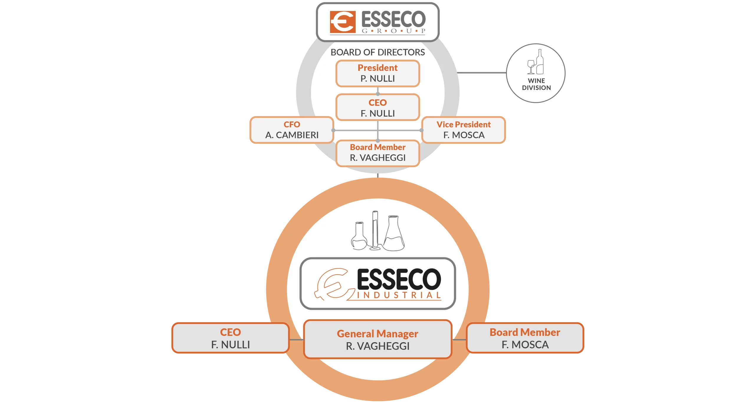 The Board of Directors (BoD) of Esseco Industrial consists of a Chairman and includes two directors appointed for a three-year term. The BoD is responsible for guiding the company through targeted strategies and rigorous management, ensuring compliance with the highest operational and ethical standards.