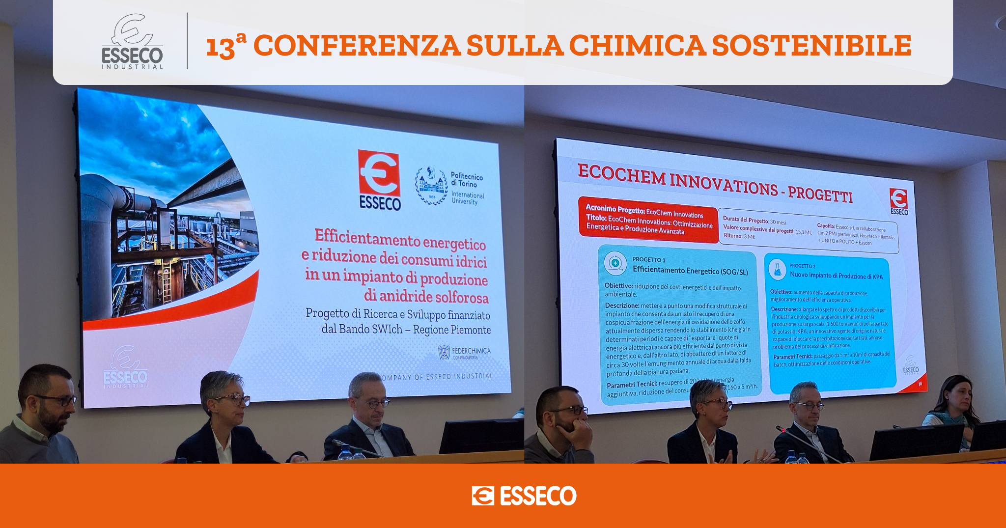 Esseco Srl, con Daniela Colombo, e il Politecnico di Torino, con il prof. Fabio Deorsola, hanno illustrato il progetto “Efficientamento energetico e riduzione dei consumi idrici in un impianto di produzione di anidride solforosa”: una modifica strutturale dell’impianto che consente di recuperare energia di processo e ridurre in modo significativo i consumi idrici attraverso un sistema innovativo a ciclo chiuso.