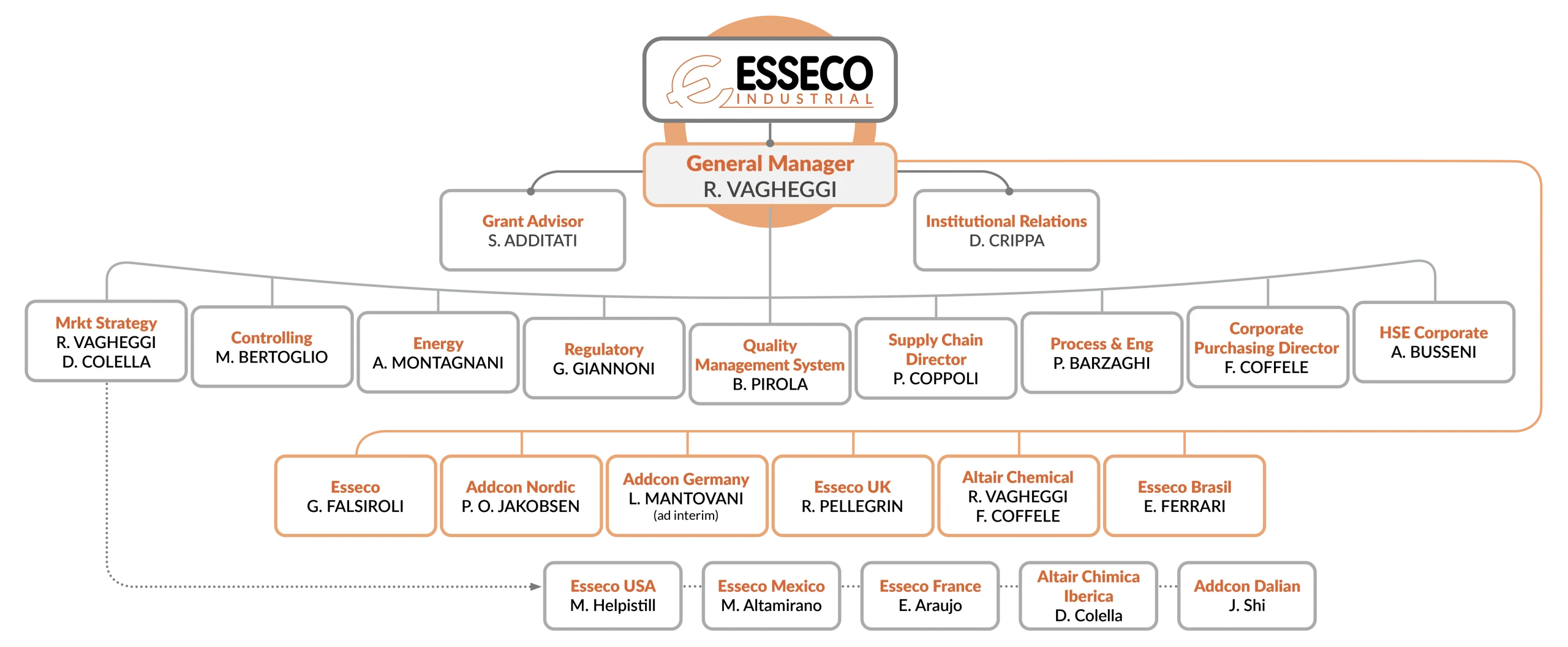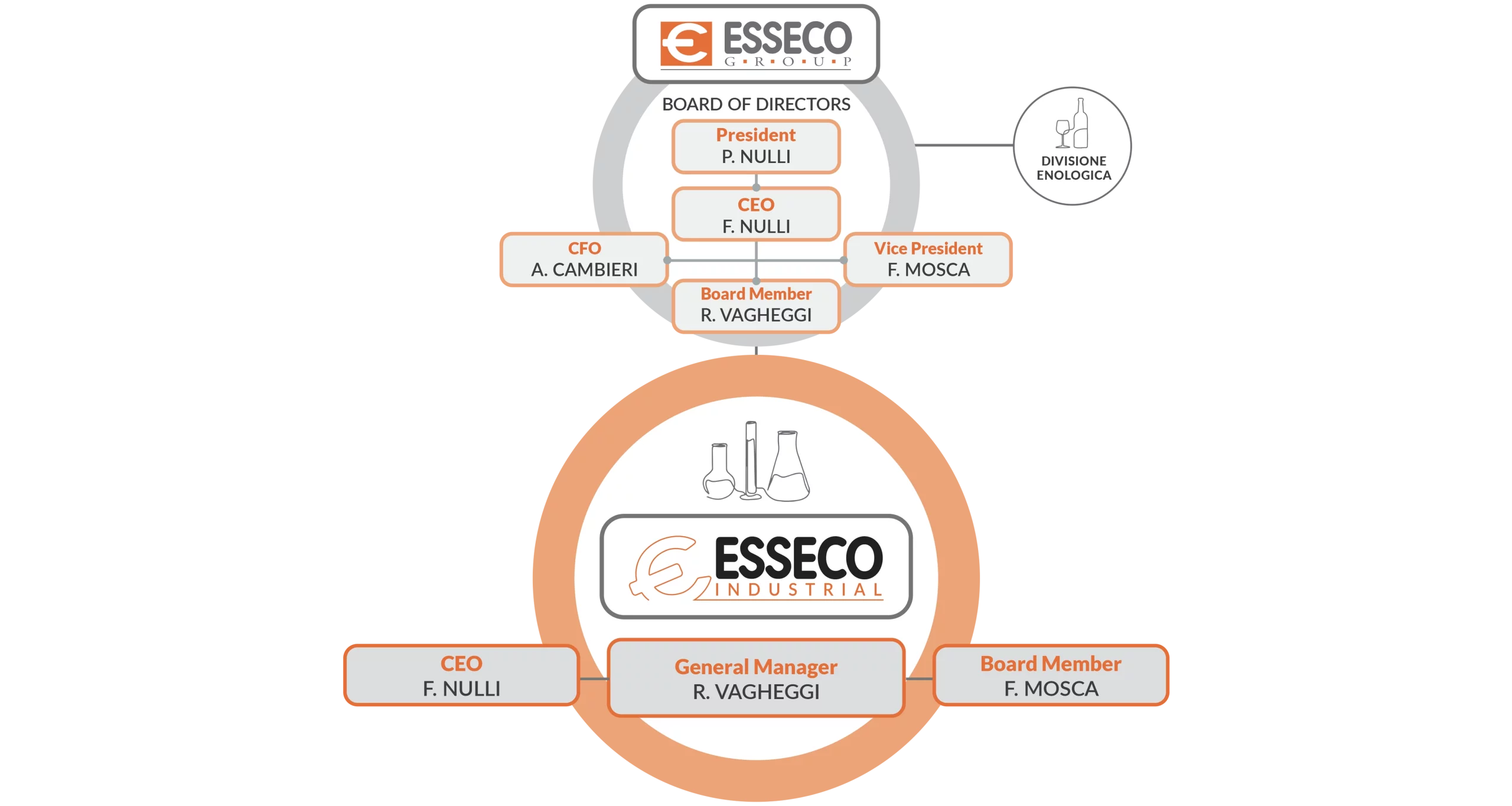 Il Consiglio di Amministrazione (CdA) di Esseco Industrial si compone di un Presidente e include due consiglieri nominati per un mandato triennale. Il CdA è responsabile di guidare l’azienda attraverso strategie mirate e gestione rigorosa assicurando il rispetto dei più alti standard operativi e etici.